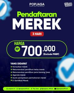 Dalam dunia bisnis yang semakin kompetitif, memiliki hak merek yang sah menjadi keharusan. Tanpa perlindungan hukum, merek usaha Anda sangat rentan ditiru, disalahgunakan, atau bahkan direbut oleh pihak lain yang lebih dulu mendaftarkannya. Untuk itulah hadir layanan jasa pengurusan hak merek dari POPJASA yang siap membantu pelaku usaha mengurus legalitas merek secara cepat, mudah, dan profesional.